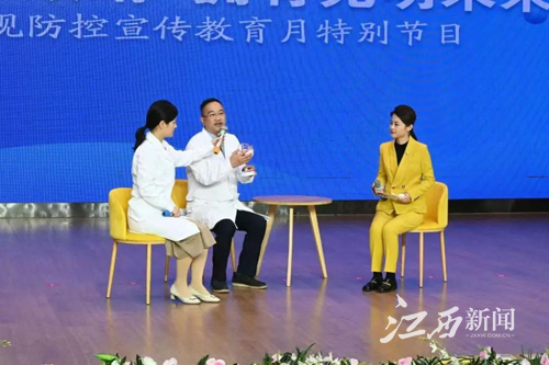 在啟動儀式上,全國兒童青少年近視防控專家宣講團成員、南昌大學(xué)附屬眼科醫(yī)院黨委委員、副院長廖洪斐,江西省綜合防控兒童青少年近視專家宣講團成員、視光部負責(zé)人熊芬在會場,通過生動的形式將眼科專業(yè)知識融入趣味性的互動中,為近兩百名師生宣講近視防控知識,開展呵護眼健康互動科普。當(dāng)天全省中小學(xué)生通過贛教云、未來V直播平臺和健康江西客戶端同步觀看直播,累計707萬人次點擊觀看并參與互動。