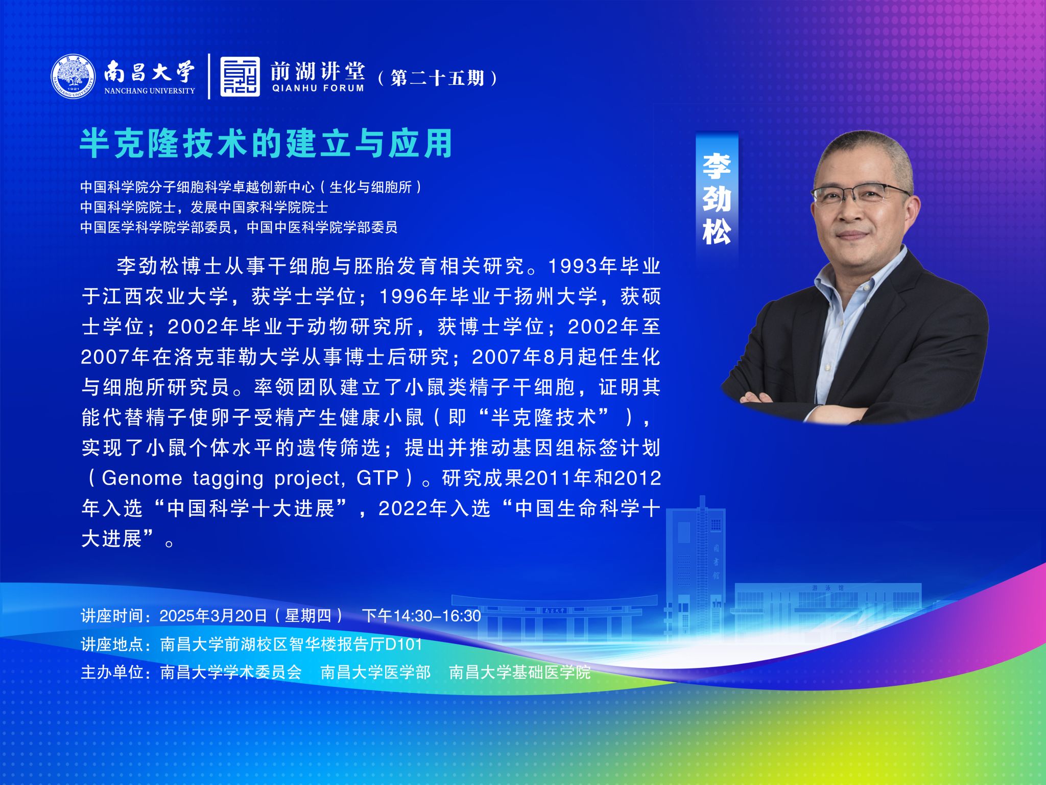 時間 2025年3月20日(星期四) 地點 南昌大學前湖校區智華樓報告廳D101