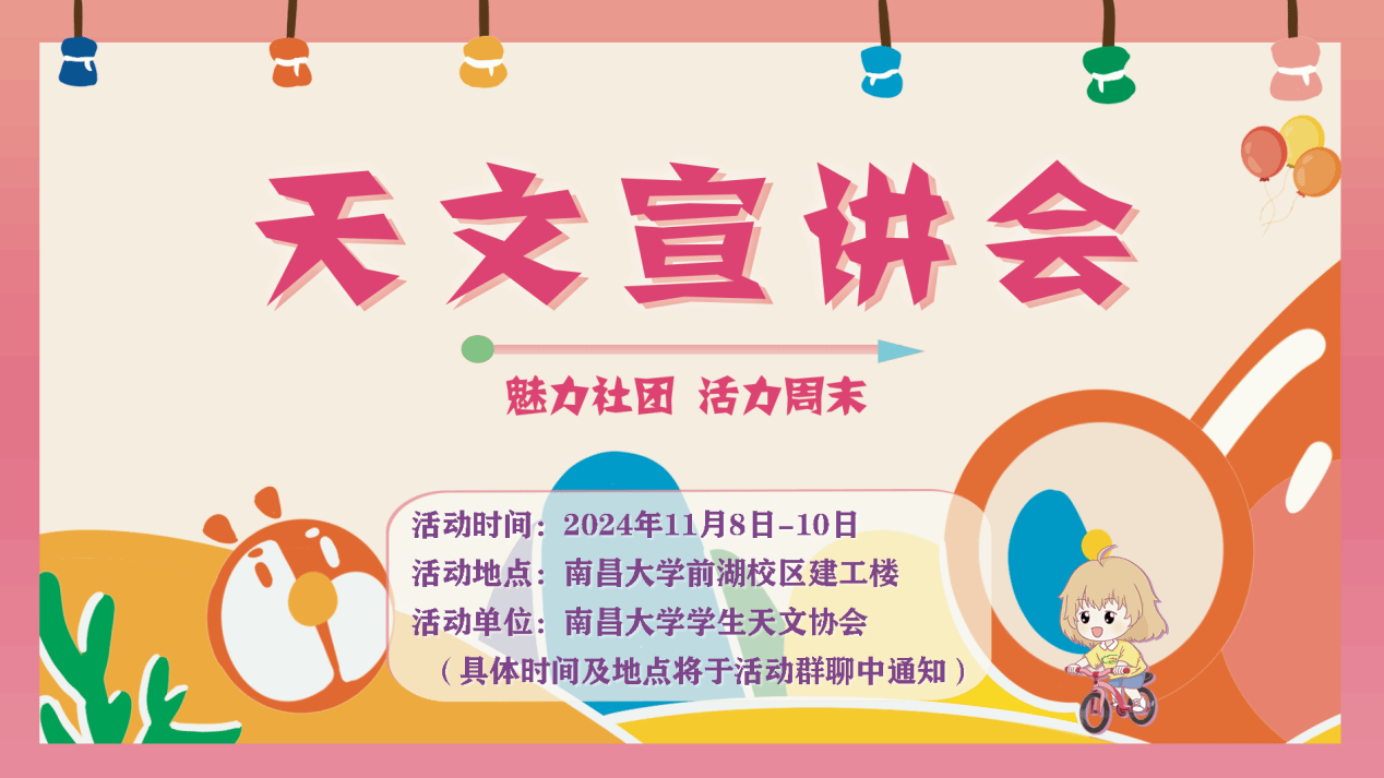 2.增加社團(tuán)成員之間交流機(jī)會,活躍社團(tuán)內(nèi)部氛圍, 為南昌大學(xué)各個年級的天文愛好者提供一個發(fā)展自己愛好的平臺